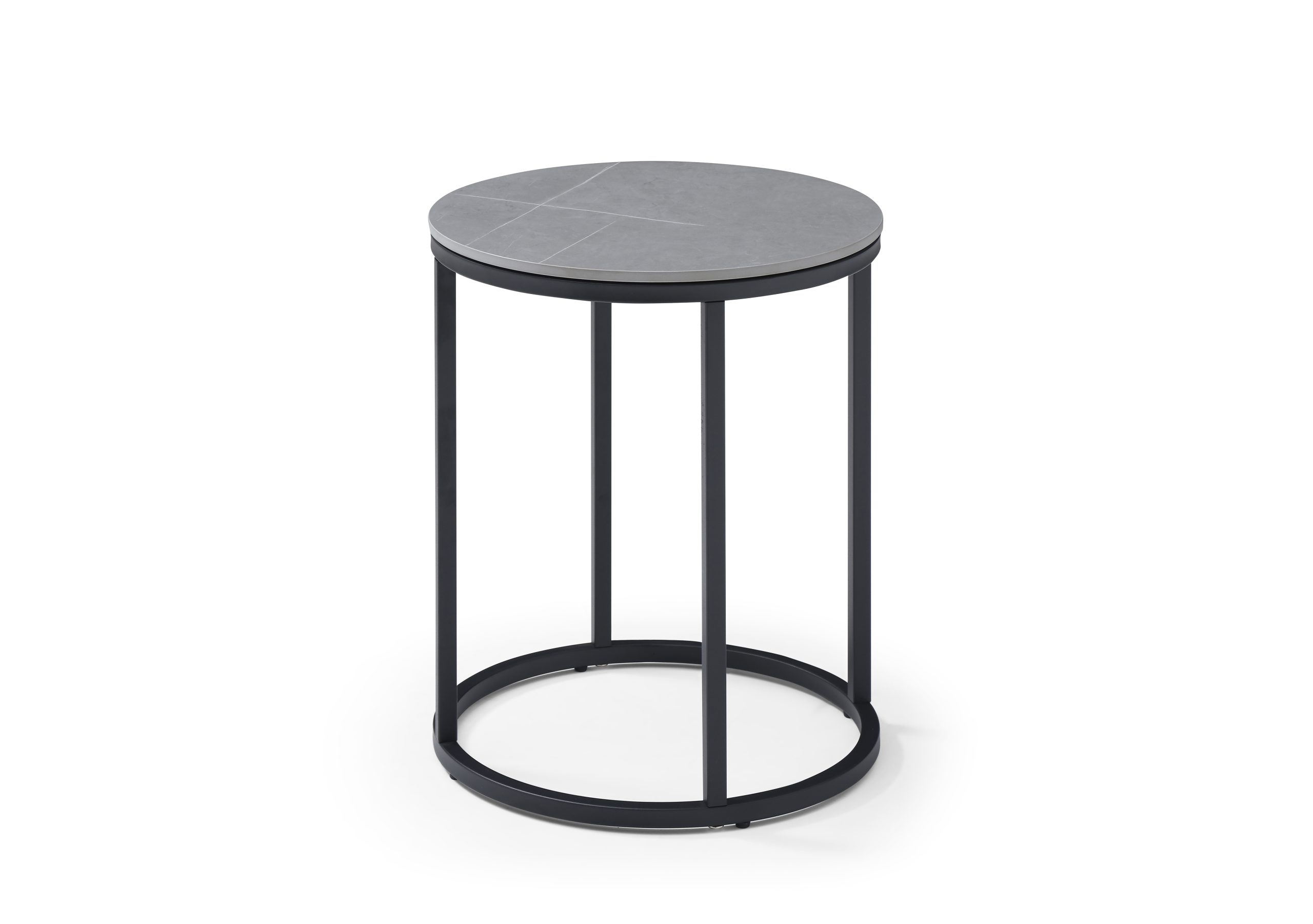 Palma End Table – Grey Ceramic Top/Black Powder Coated Metal Frame