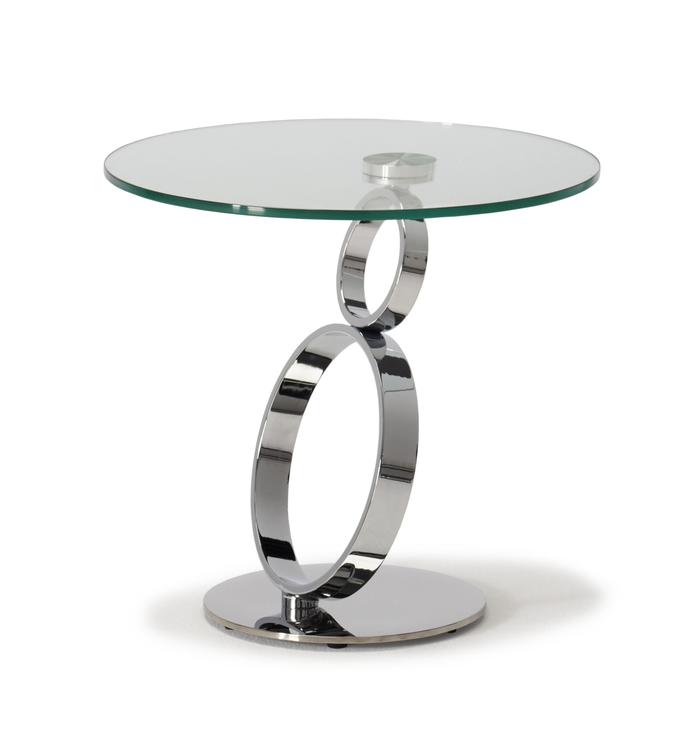 Rings Lamp Table. Polished Stainless Steel frame with clear toughened glass top.