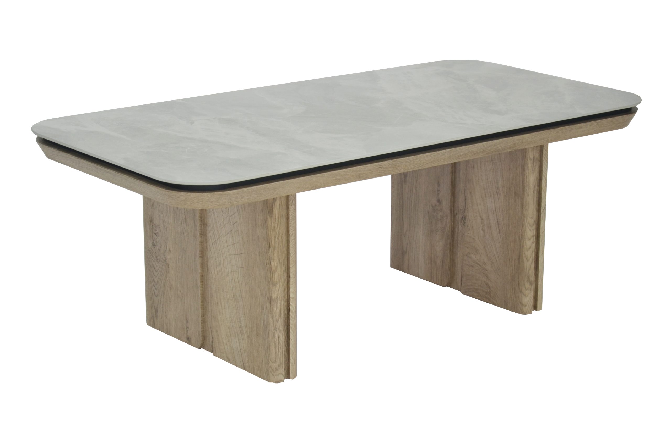 Stonesby Rectangular Coffee Table – Light Grey Sintered Stone/Smooth Wood Finish MDF