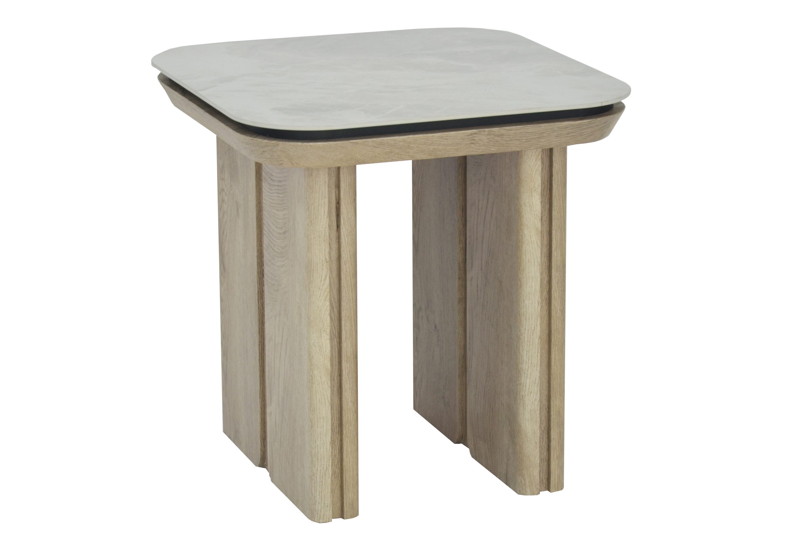 Stonesby Square End Table – Light Grey Sintered Stone/Smooth Wood Finish MD